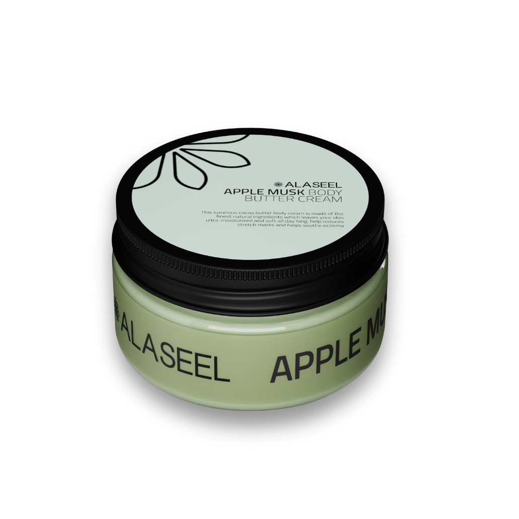 Alaseel Apple Musk Body Butter Cream is a luxurious skin moisturizer formulated with shea butter, cocoa butter, and coconut oil. Designed to provide long-lasting hydration, this nourishing cream restores softness to even the driest skin while leaving behind a subtle and refreshing apple musk fragrance.